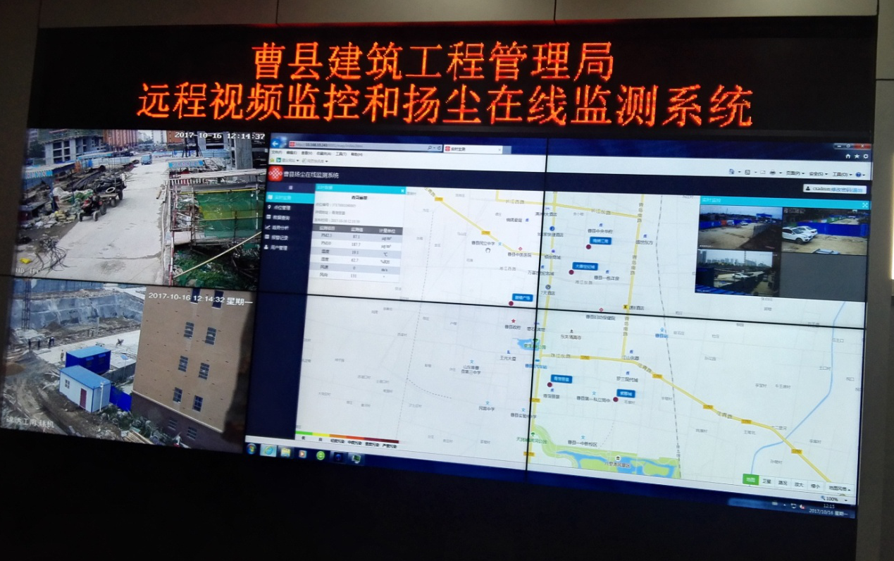 APEY-YC型揚(yáng)塵視頻在線監(jiān)測(cè)系統(tǒng)支持遠(yuǎn)程視頻監(jiān)控和揚(yáng)塵在線監(jiān)測(cè)。如下圖曹縣建筑工程管理局遠(yuǎn)程視頻監(jiān)控和揚(yáng)塵在線監(jiān)測(cè)系統(tǒng)(包括大屏幕,服務(wù)器機(jī)柜,軟件平臺(tái),硬件設(shè)備):